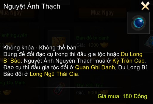 - B1 : Mua Nguyệt Ảnh Thạch trên Kỳ Trân Các.